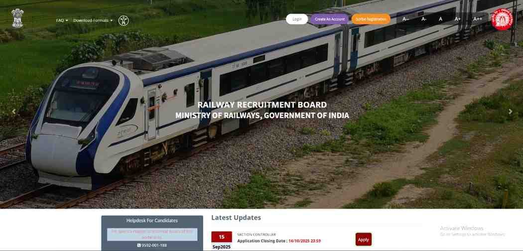 - सबसे पहले आप रेलवे रिक्रूटमेंट बोर्ड (RRB) की आधिकारिक वेबसाइट के होम पेज पर जाएं।