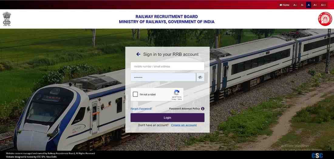 - अब आपको पुनः इसके होम पेज पर जाकर Login के ऑप्शन पर क्लिक करके Login With RRB Account Credentials के ऑप्शन पर क्लिक करना होगा