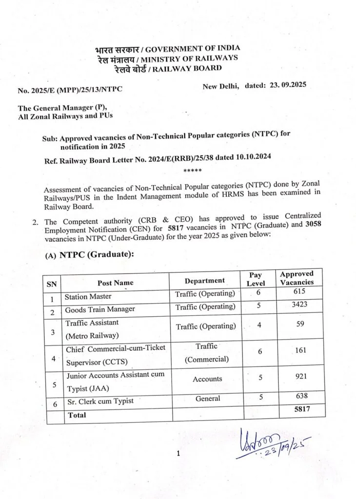 RRB NTPC Vacancy 2025 के तहत कुल कितने पदों पर उम्मीदवारों की भर्ती की जाएगी?